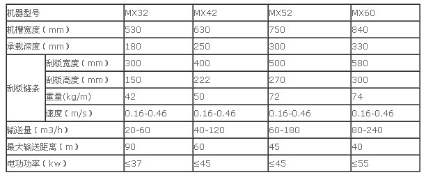 MX系列刮板輸送機(jī)技術(shù)參數(shù)