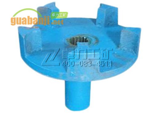 安全型液力聯(lián)軸器主要由泵輪、透平輪、輔助室外殼和彈性聯(lián)軸器等組成,泵輪和透平輪是液力聯(lián)軸器的主要工作零件。在液力聯(lián)軸器的外殼上有定量注液孔和易熔合金保護塞,定量注液塞是保證向液力聯(lián)軸器注入額定工作液體,易熔合金保護塞是液力聯(lián)軸器的過熱保護裝置。當(dāng)液力聯(lián)軸器因長期過負荷,引起透平輪和泵輪之間的滑差,使工作液體溫度升到一定程度時,易熔合金融化將工作液體甩出,使泵輪空轉(zhuǎn),從而防止電動機燒毀,并使其它傳動件不置損壞。易熔合金融化溫度一般為850C。