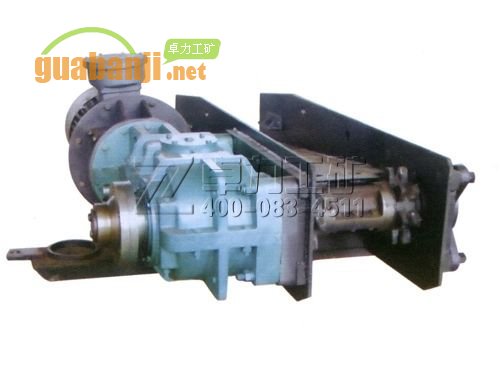 機頭部:是刮板運輸機的傳動裝置,由機頭架、電動機、液力聯(lián)軸器、減速器、機頭主軸和導(dǎo)鏈輪組成。機頭部的主要作用是用電動機的轉(zhuǎn)動,經(jīng)聯(lián)軸節(jié)、減速器、機頭主軸和導(dǎo)鏈輪,帶動刮板鏈在溜槽內(nèi)運行,從而將煤輸送出來。