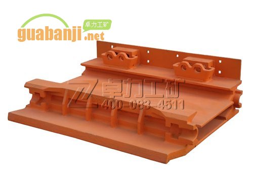 溜槽分為中部槽、調(diào)整溜槽和過渡溜槽,溜槽是整個刮板運輸機的機身,有一定的強度,有較高的耐磨性。中部槽又叫標(biāo)準(zhǔn)槽,其規(guī)格為1500*620*180,每節(jié)溜槽可偏轉(zhuǎn)30。