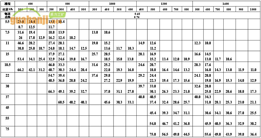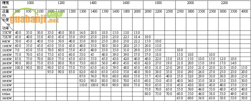 11、ZGB重型刮板機(jī)功率、長度選擇表
